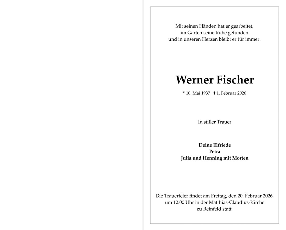 wir wünschen Ihnen von Herzen viel Kraft, dass Sie Menschen um sich haben, die Ihnen in dieser schweren Zeit beistehen und Halt geben. Zusätzlich können Sie auf dieser Gedenkseite Erinnerungen teilen und so das Andenken gemeinsam wachhalten.